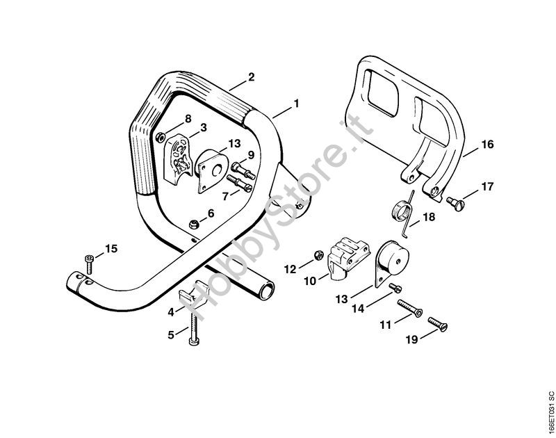 Ricambio Manico tubolare con rivestimento Motoseghe a benzina (MS) 090 STIHL Contiene anche i ricambi n. 2