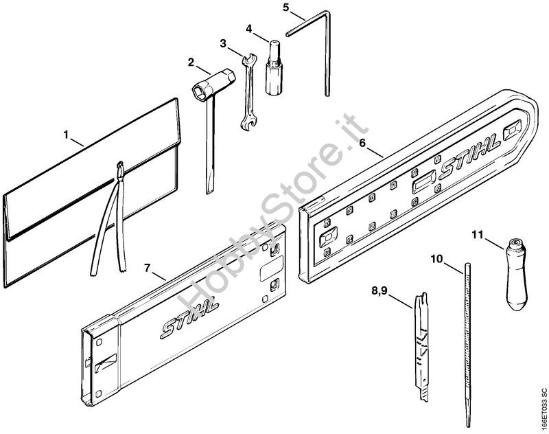 Ricambio Serie attrezzi Motoseghe a benzina (MS) 090 AV STIHL Contiene anche i ricambi da n. 1 a 5