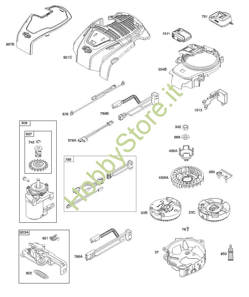 C - Alloggiamento ventola, elementi di comando, impianto elettrico, volano B&S - 10 seriale da 104M0B-0123-H1 brand Stihl