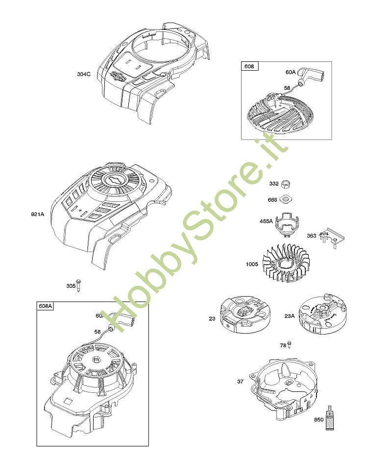 D - Alloggiamento ventola, volano, avviatore autoavvolgente B&S - 10 seriale da 104M0B-0123-H1 brand Stihl