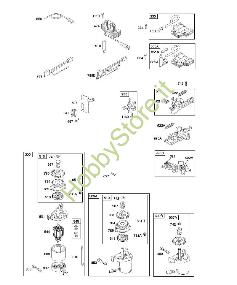 B - Alternatore, dispositivo di avviamento elettrico, sistema elettrico, freno volano, accensione B&S - 12 seriale da 122H82-0125-01 brand Stihl