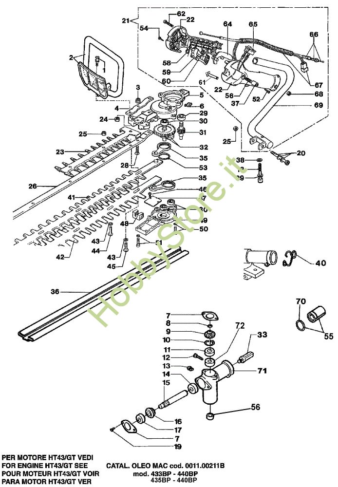In caso di ordine di ricambi per il tuo prodotto GT / HT43 Accessorio tagliasiepi della Oleo-Mac, per permettere al nostro staff di spedirti i ricambi corretti, inserire, nella pagina finale del carrello nel campo Note varie, anno della macchina e, se disponibile, il suo numero di matricola.
