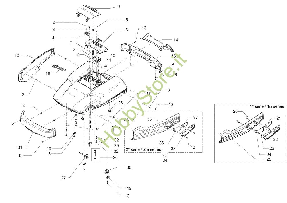 ATTENZIONE: Se nella lista sotto non compaiono i relativi ricambi riportati nell'esploso