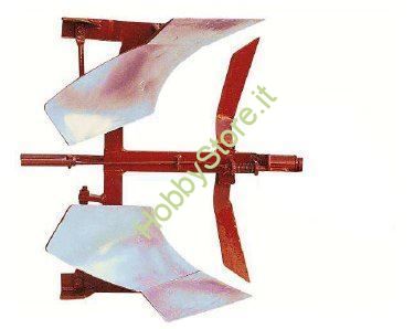 Aratro reversibile 180° V180 per la movimentazione del terreno. L'aratro deve essere collegato al motocoltivatore  per mezzo del attacco porta attrezzi. Se non lo si possiede sarà necessario acquistarlo in abbinamento