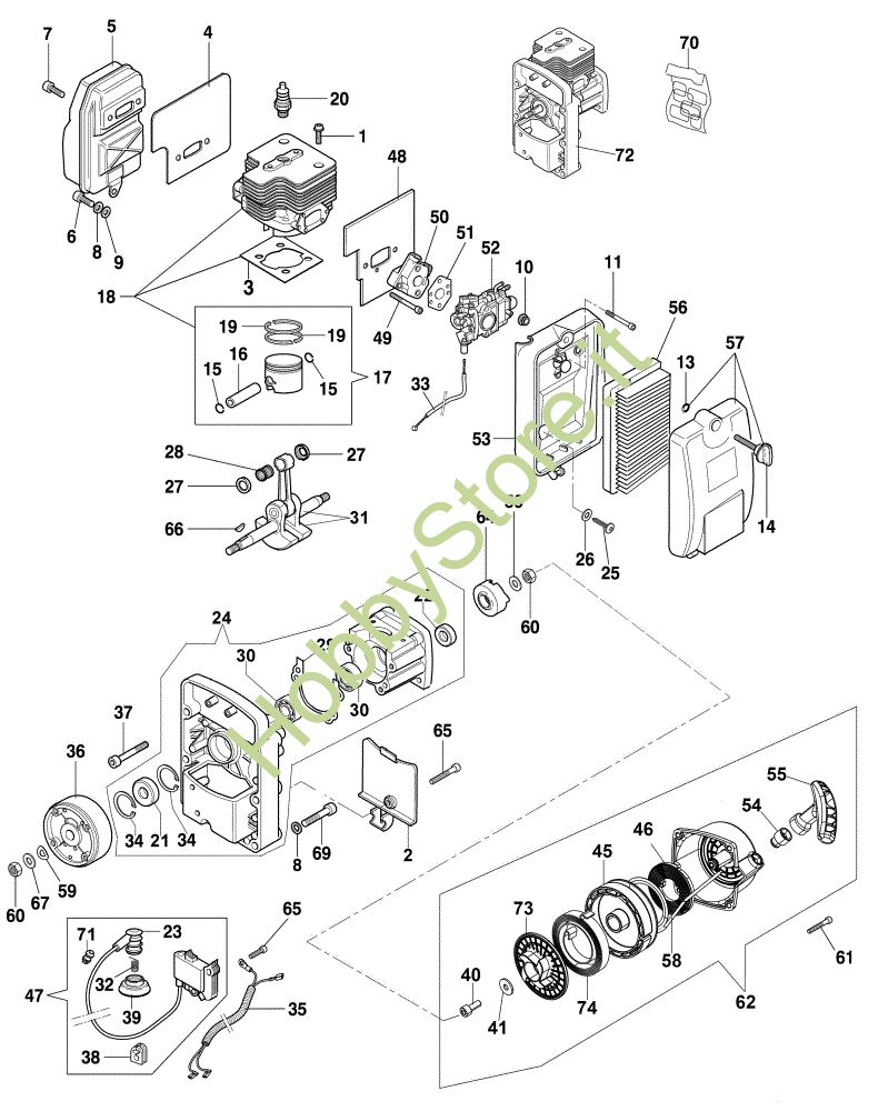 Ricambio Short block Avviamento e motore AT 2063 Atomizzatore della marca Efco Richiede pezzi:6