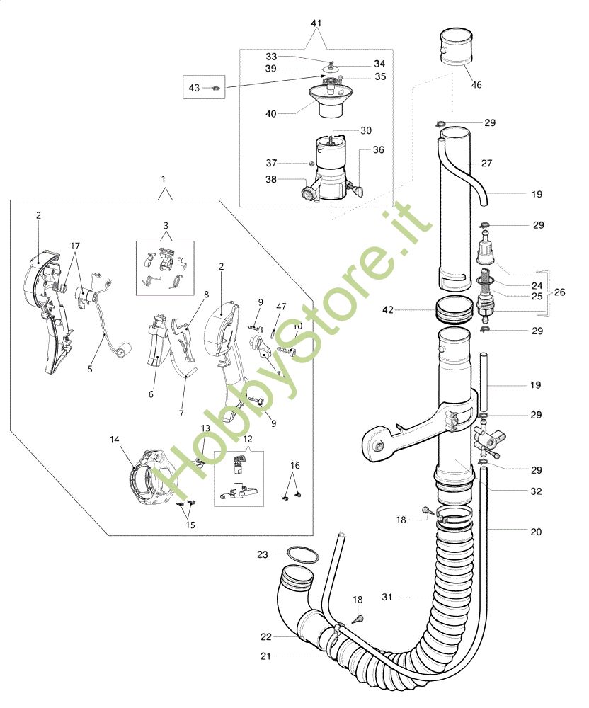 Ricambio Kit impugnatura Tubo di lancio AT 2063 Atomizzatore della marca Efco Richiede pezzi:1