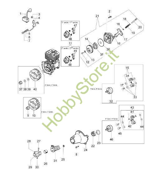 ATTENZIONE: Se nella lista sotto non compaiono i relativi ricambi riportati nell'esploso