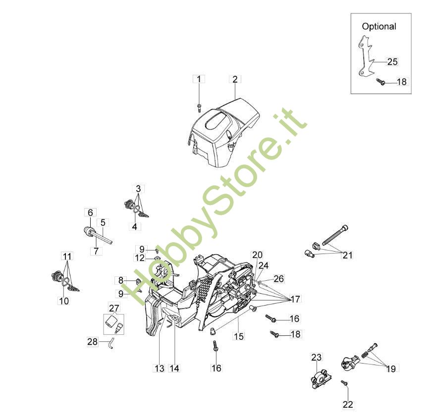 Tavoletta tecnica che rappresenta il basamento della motosega GS 350 C Oleomak
