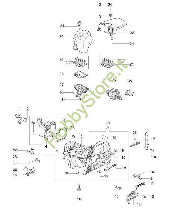 ATTENZIONE: Se nella lista sotto non compaiono i relativi ricambi riportati nell'esploso