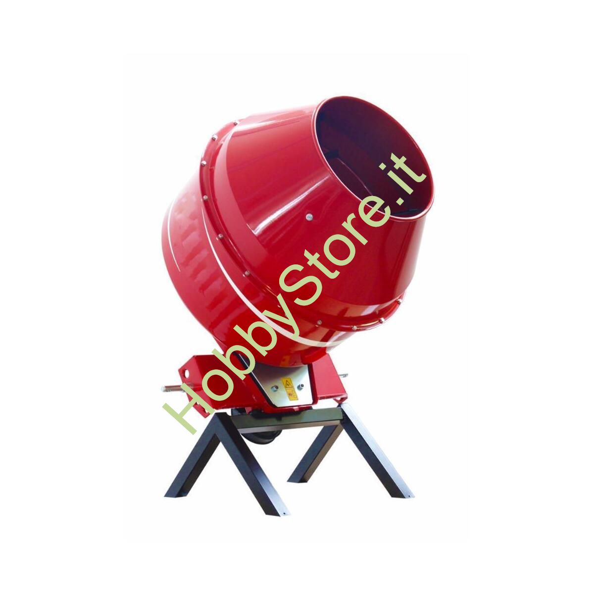 Betoniere, betoniera hobbystore, betoniere hobbystore prodotti per lavorazioni ediliBetoniera per trattori: - Cilindro idraulico a semplice effetto per il terzo punto. - Senza albero cardanico. - Velocità max consigliata PTO: 250/300 r.p.m. - Attacco al trattore di prima categoria. - Capacità massima di miscelazione: 250lt