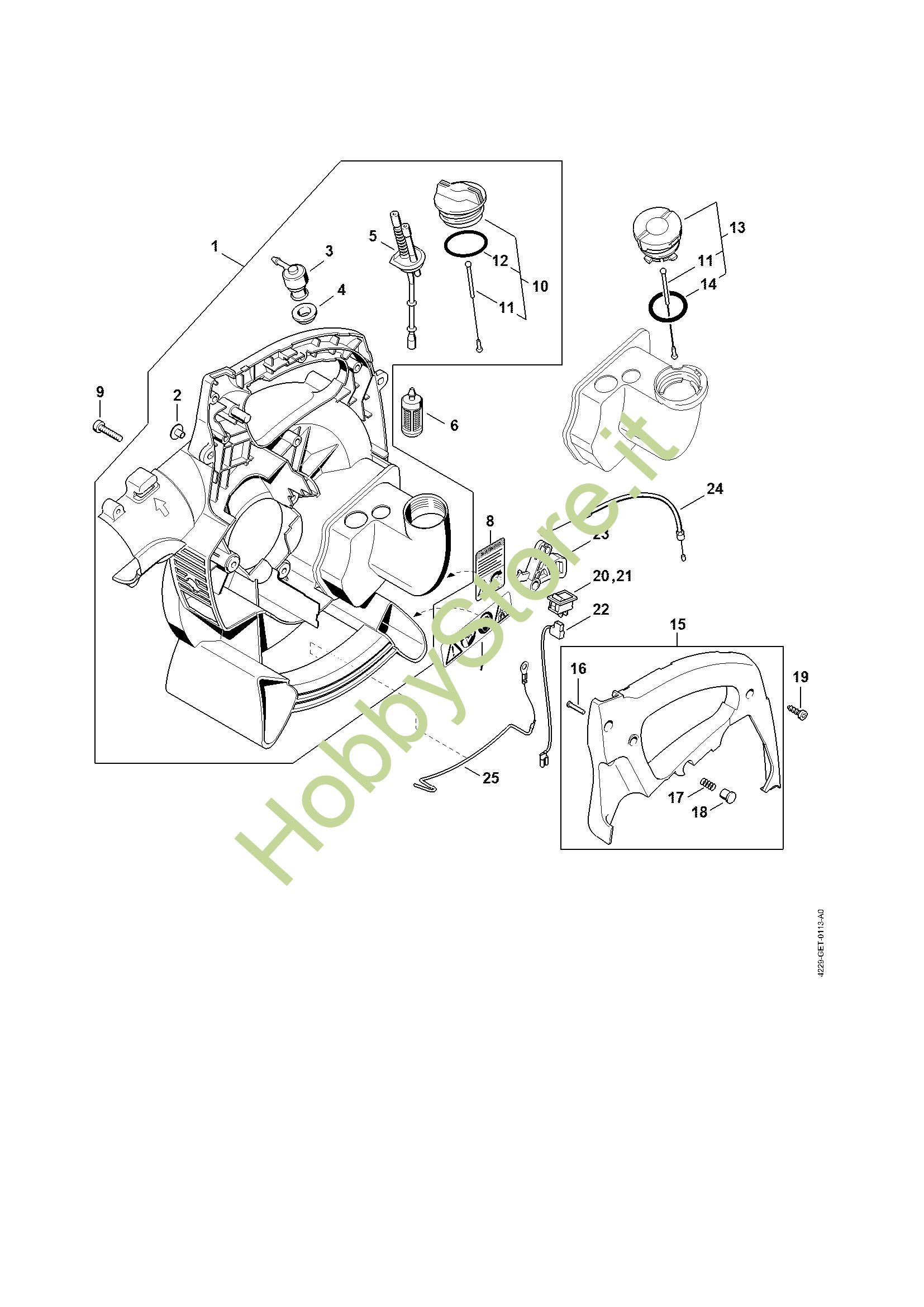 Ricambio Carter soffiatore interno Soffiatori (BG, BR) BG 55 STIHL Contiene anche i ricambi nr. da 2 a 5, 10 a 12