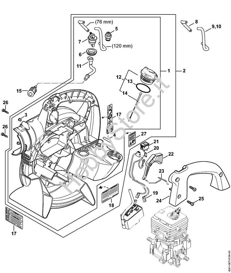 Ricambio Carter soffiatore Soffiatori (BG, BR) BG 66-D STIHL Contiene anche i ricambi nr. da 3 a 14 e 16