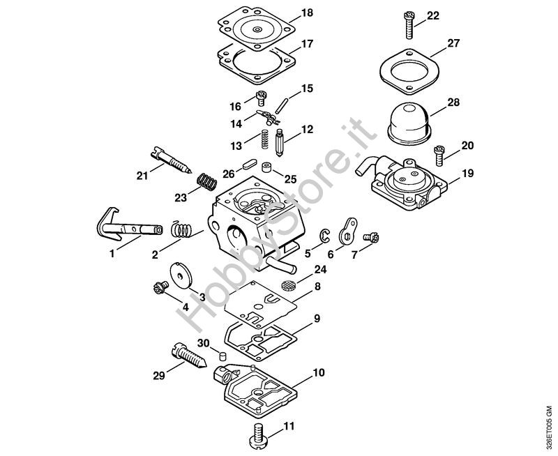 Ricambio Serie particolari carburatore Soffiatori (BG, BR) BG 75 STIHL Contiene anche i ricambi nr. 8, 9, 17, 18