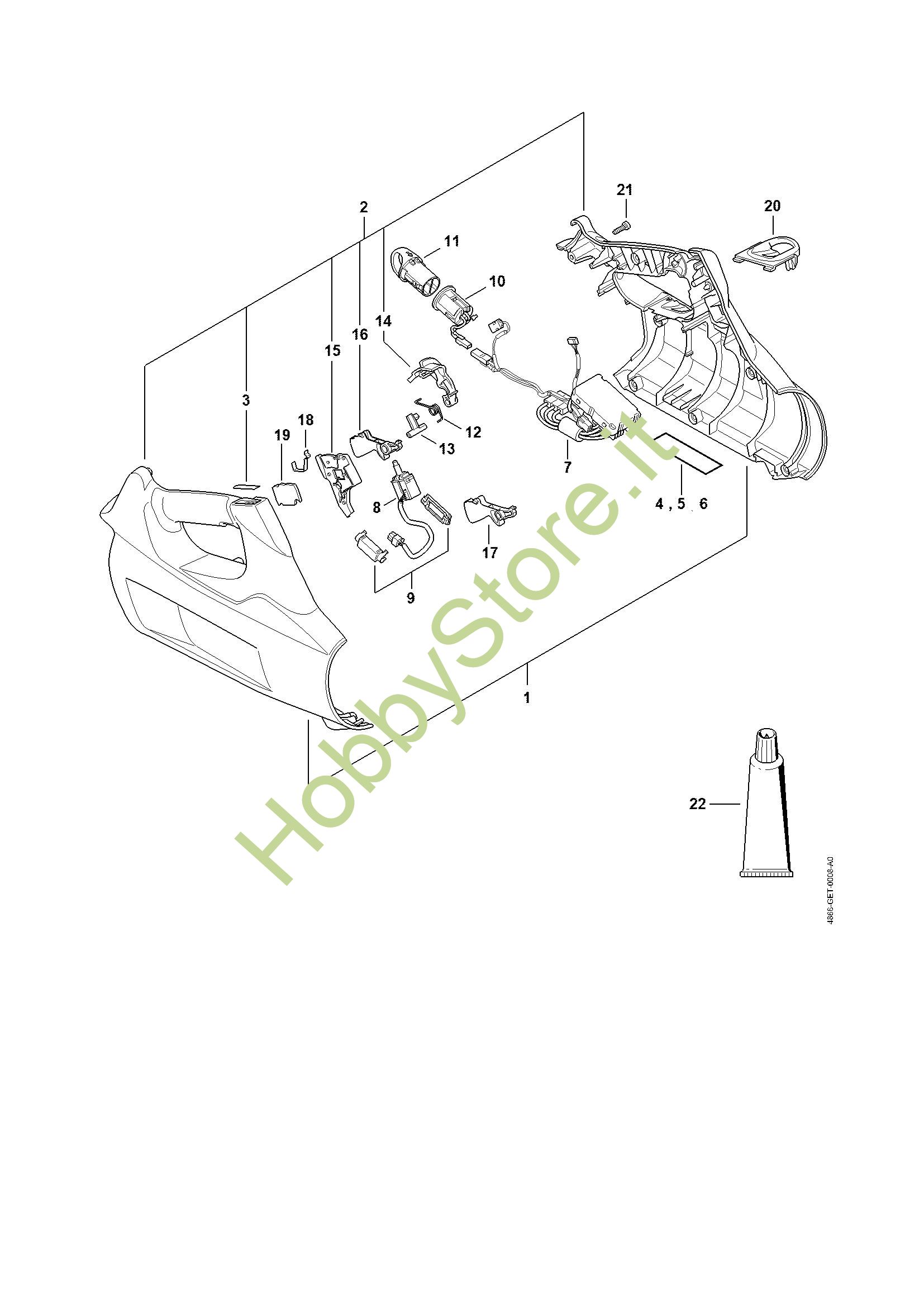 Ricambio Corpo impugnatura Soffiatori a batteria (BGA) BGA 100 STIHL Contiene anche i ricambi nr. 3 e da 14 a 16