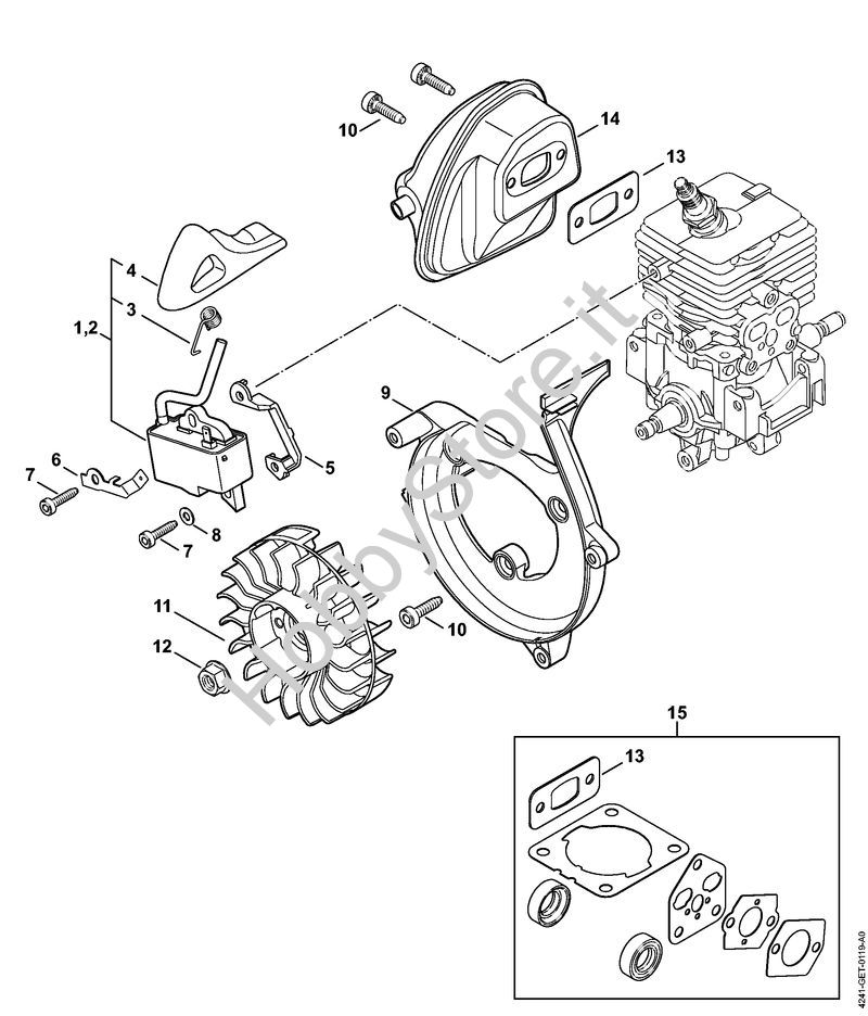 Ricambio Modulo di accensione Soffiatori (BG, BR) BR 200 STIHL Contiene anche i ricambi n. 3 e 4