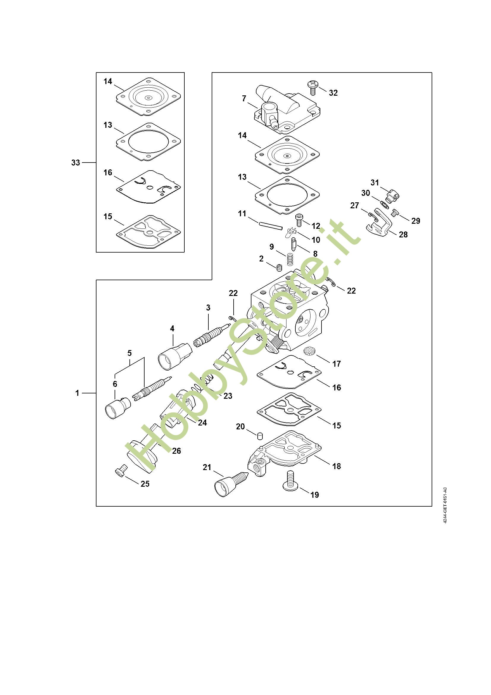 Ricambio Carburatore 4244/11 Soffiatori (BG, BR) BR 450 STIHL Contiene anche i ricambi da n. 2 a 32
