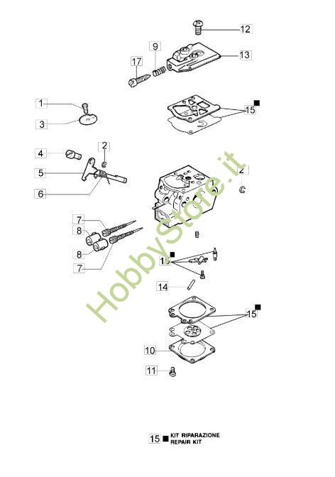 Scheda tecnica del carburatore WT 930 C per decespugliatore a impugnatura singola BC 280 S della Oleomac