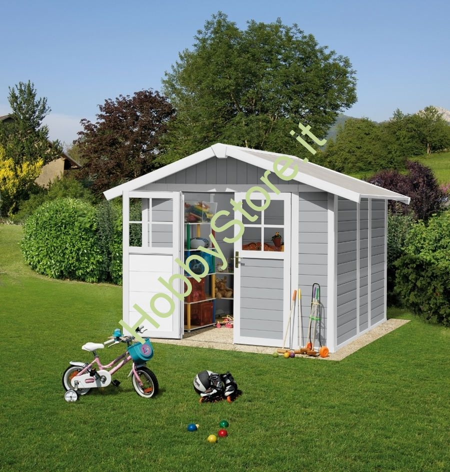 Casetta in pvc con finestre/ a in metallo, per qualsiasi esigenza in giardino. Ottimale isolamento dalle condizioni esterne, imballo compatto e di facile trasporto ed assemblaggio, garanzia di durata nel tempo.