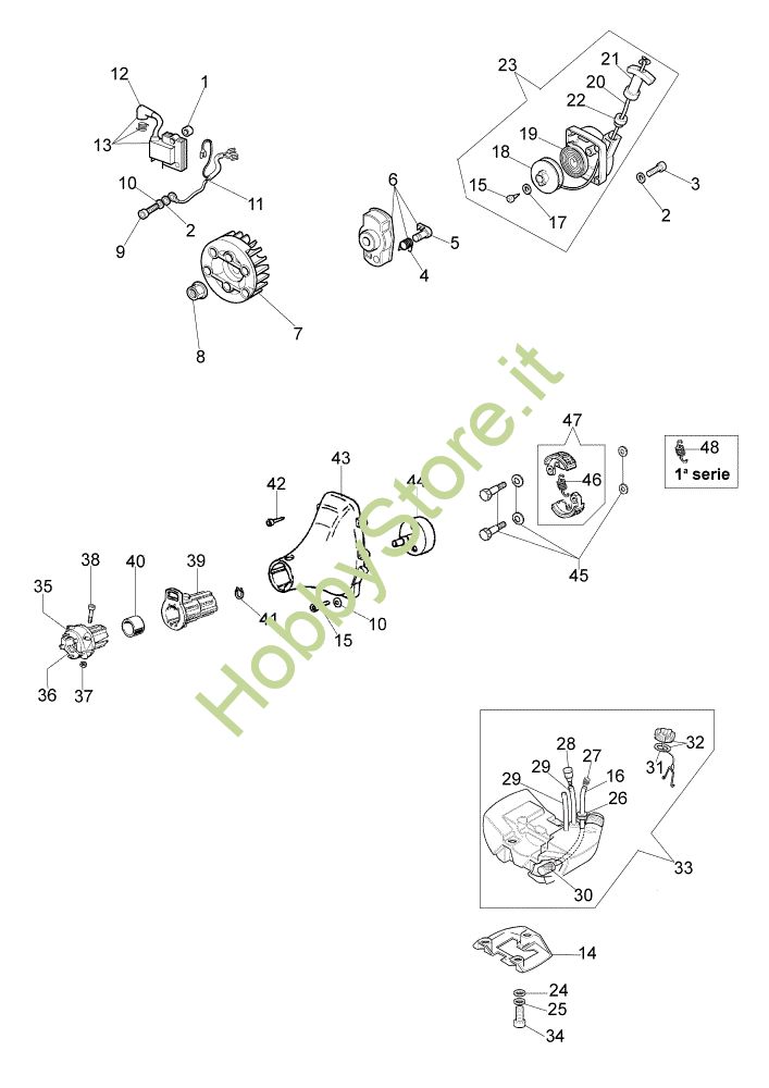 ATTENZIONE: Se nella lista sotto non compaiono i relativi ricambi riportati nell'esploso