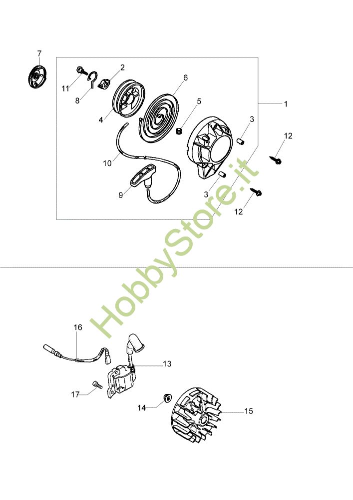 Ricambio Avviamento completo EI1-04/14 Avviamento completo DS 2600 4T Decespugliatore della marca Efco Richiede pezzi:1