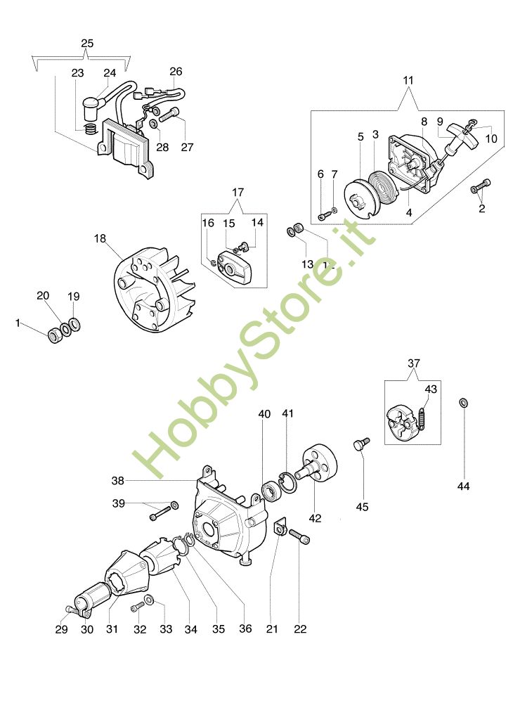 Ricambio Bobina Avviamento e frizione 740 S Decespugliatore della marca Oleo-Mac Richiede pezzi:1