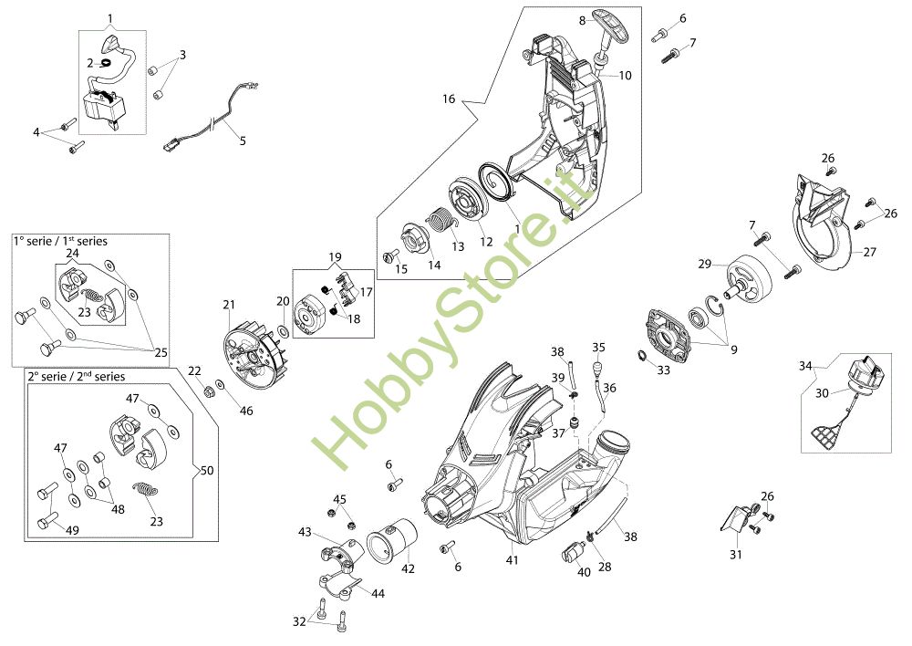 ATTENZIONE: Se nella lista sotto non compaiono i relativi ricambi riportati nell'esploso