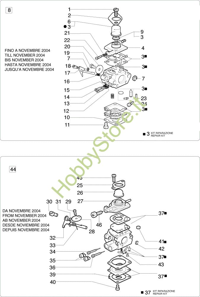 ATTENZIONE: Se nella lista sotto non compaiono i relativi ricambi riportati nell'esploso