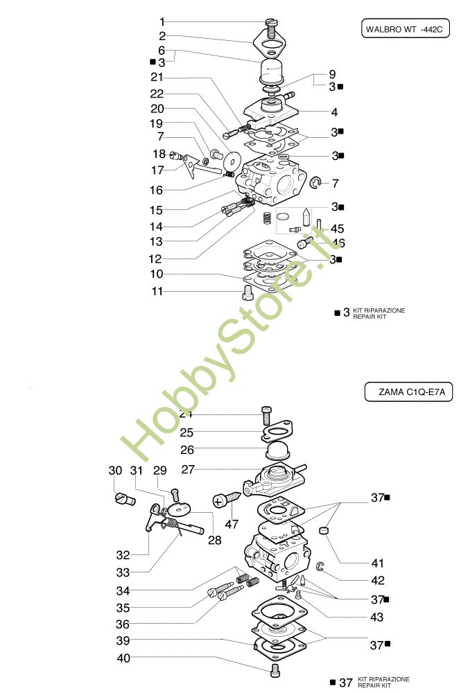 ATTENZIONE: Se nella lista sotto non compaiono i relativi ricambi riportati nell'esploso
