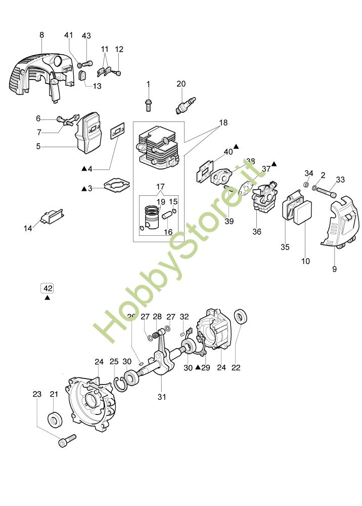 Ricambio Cilindro completo Ø34 Motore 8250 Ergo Decespugliatore della marca Efco Richiede pezzi:1