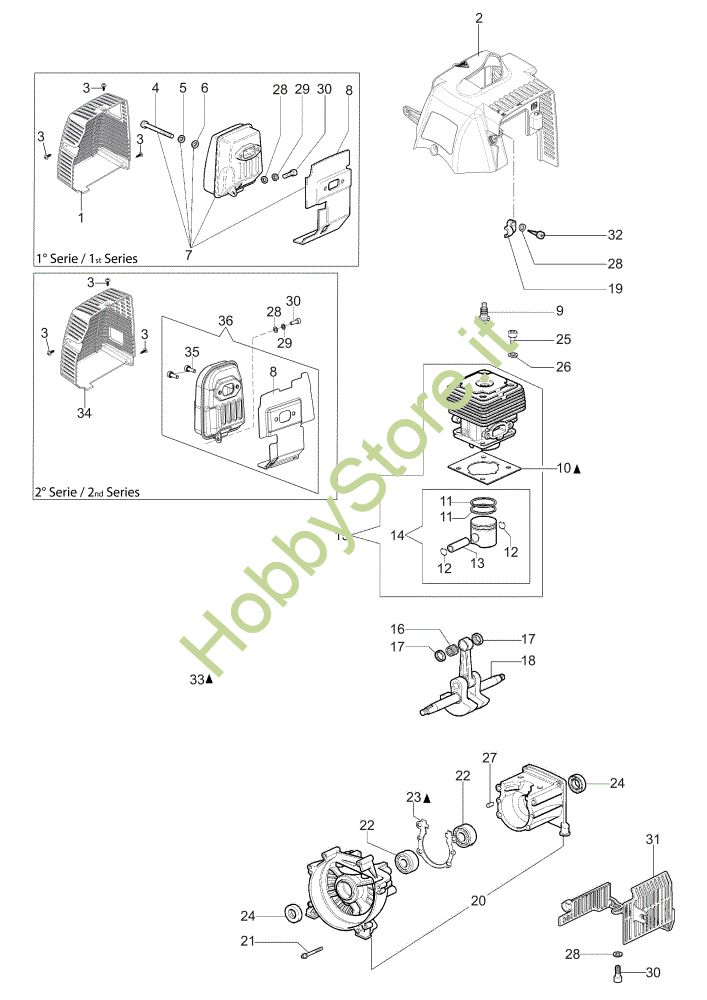 Ricambio Coppia semicarter Motore OM 43 Vers.2016 (Euro2) Decespugliatore della marca Oleo-Mac Richiede pezzi:1