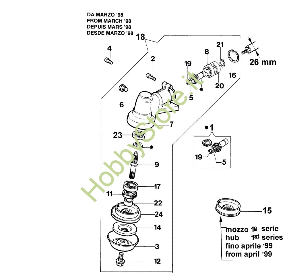 Ricambio coppia conica Ø26 + inserto BT3-085-03/09 Scatola ingranaggi dal 03/98 727 D Decespugliatore della marca Oleo-Mac