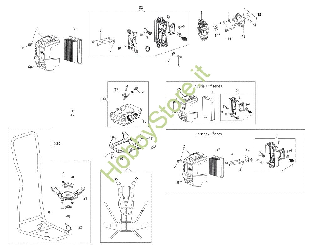 ATTENZIONE: Se nella lista sotto non compaiono i relativi ricambi riportati nell'esploso