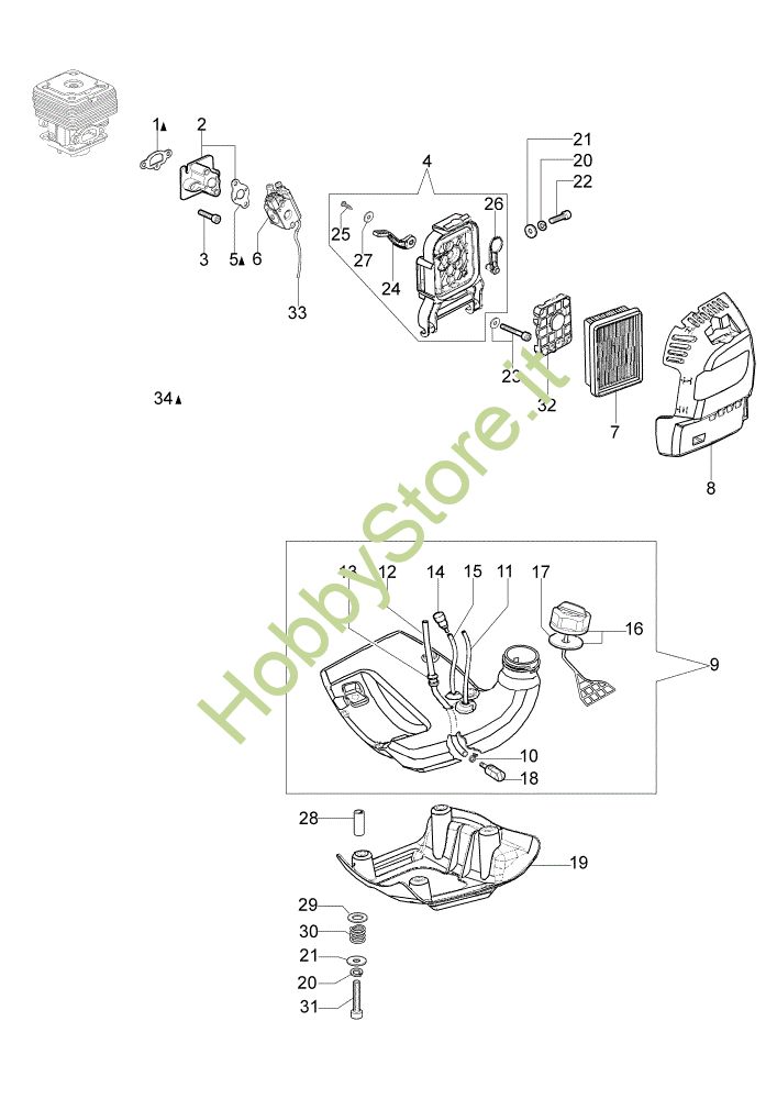 ATTENZIONE: Se nella lista sotto non compaiono i relativi ricambi riportati nell'esploso