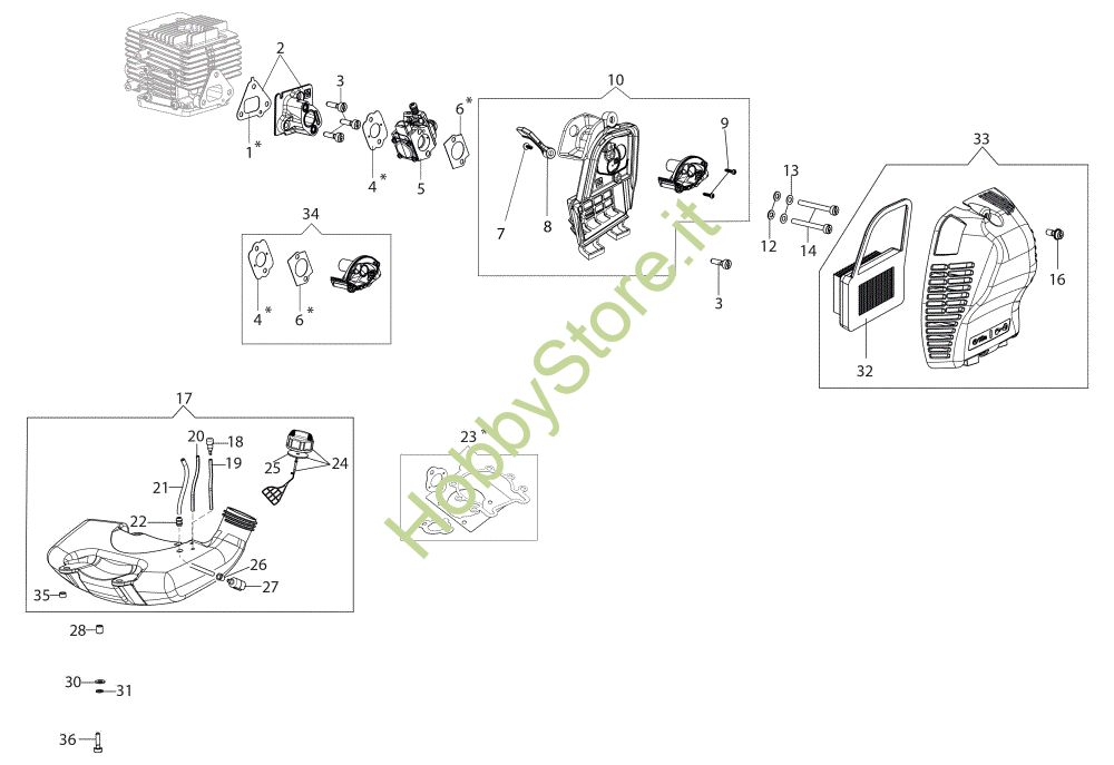 ATTENZIONE: Se nella lista sotto non compaiono i relativi ricambi riportati nell'esploso