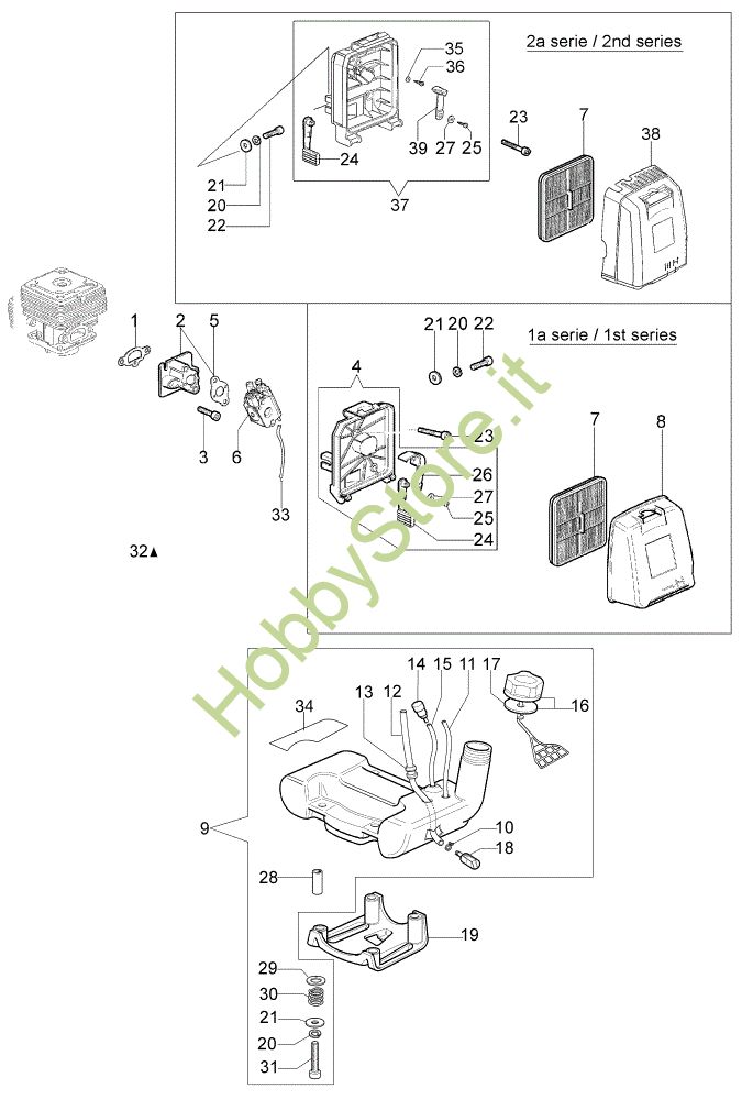 Decespugliatori STARK 3800 S (Euro 2) Decespugliatore Serbatoio e filtro aria della marca Efco