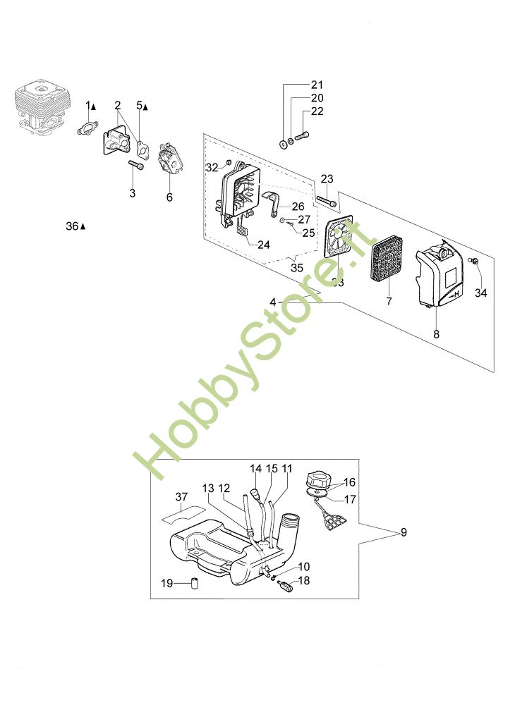 Ricambio Serbatoio completo Serbatoio e filtro aria OM 43 BP Decespugliatore della marca Oleo-Mac Richiede pezzi:1