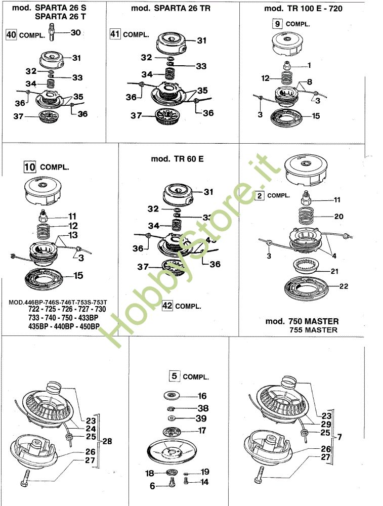 ATTENZIONE: Se nella lista sotto non compaiono i relativi ricambi riportati nell'esploso