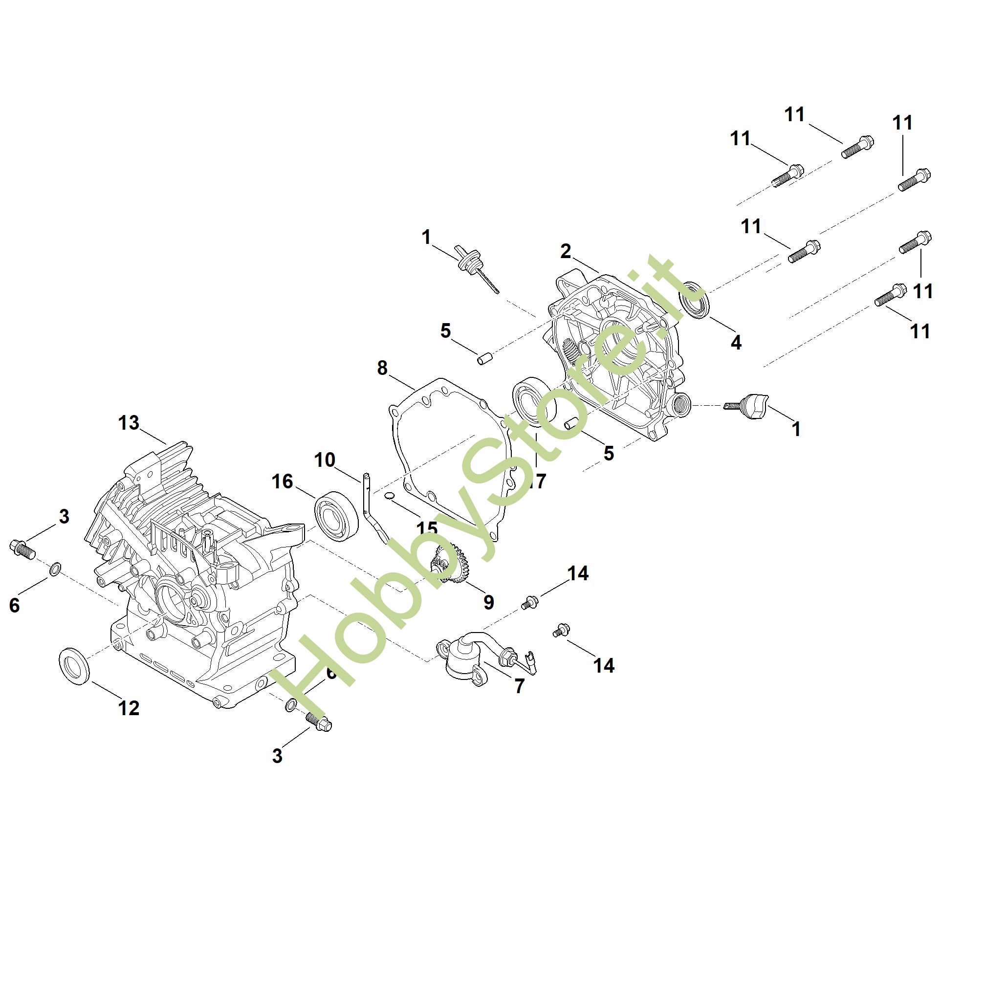Ricambio originale Coperchio carter motore EHC EHC 605.0 (EHC605-0001) Stihl Contiene anche i ricambi nr. 4,8,17