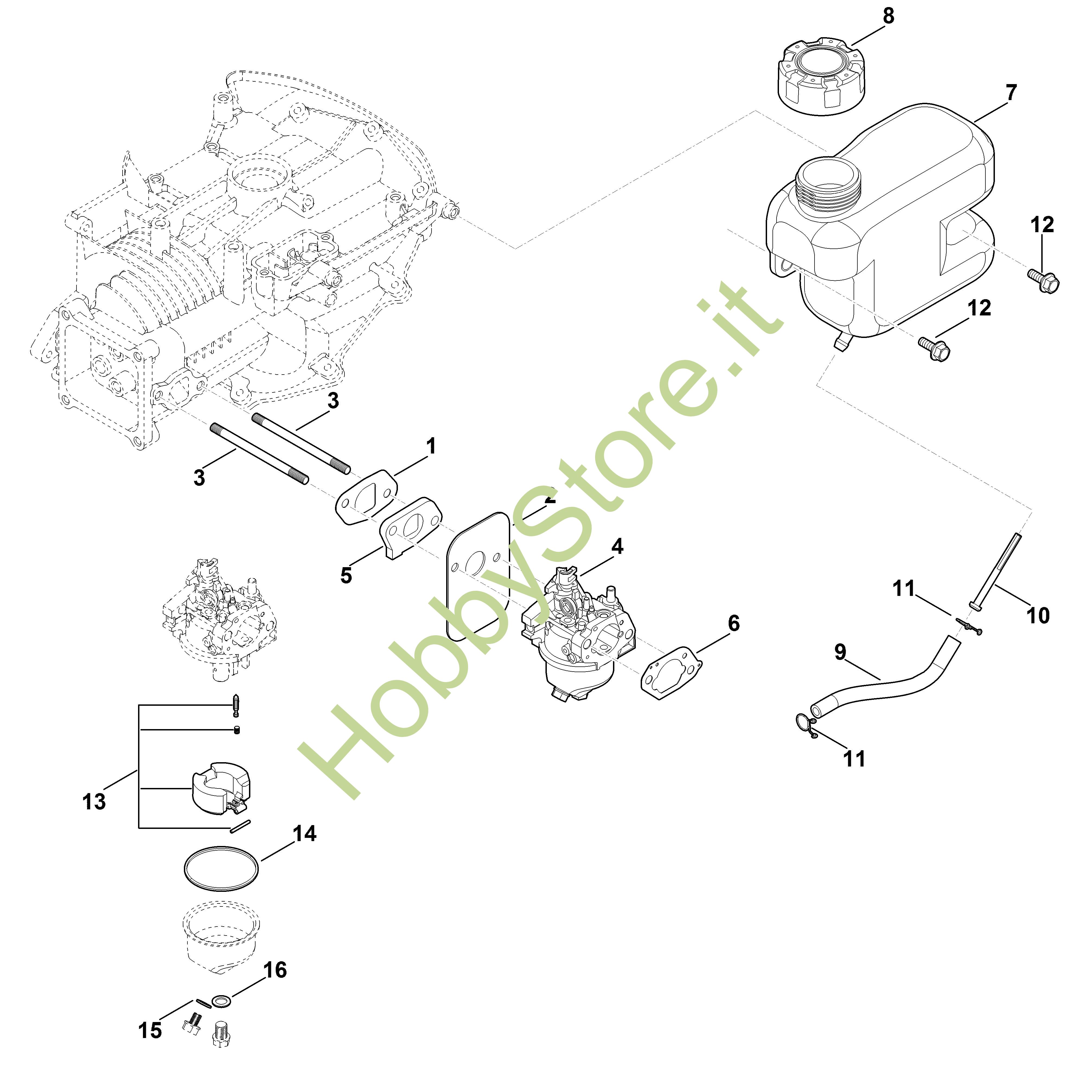 Ricambio originale Kit di riparazione carburatore EVC EVC 200.0 (EVC200-0001) Stihl Contiene anche i ricambi nr. 1,2,6,14,15,16