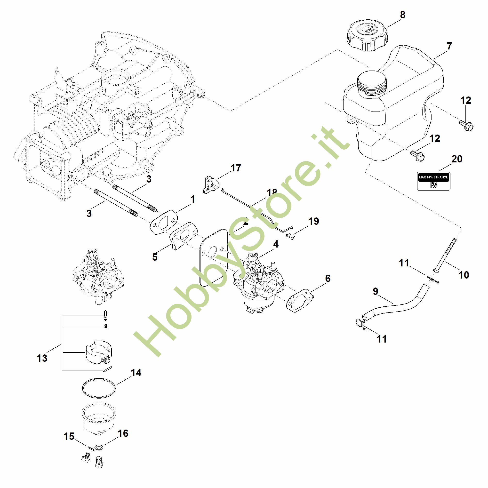 Ricambio originale Serbatoio carburante EVC EVC 200.3 C (EVC200-0006) Stihl Contiene anche i ricambi nr. 8 e 20