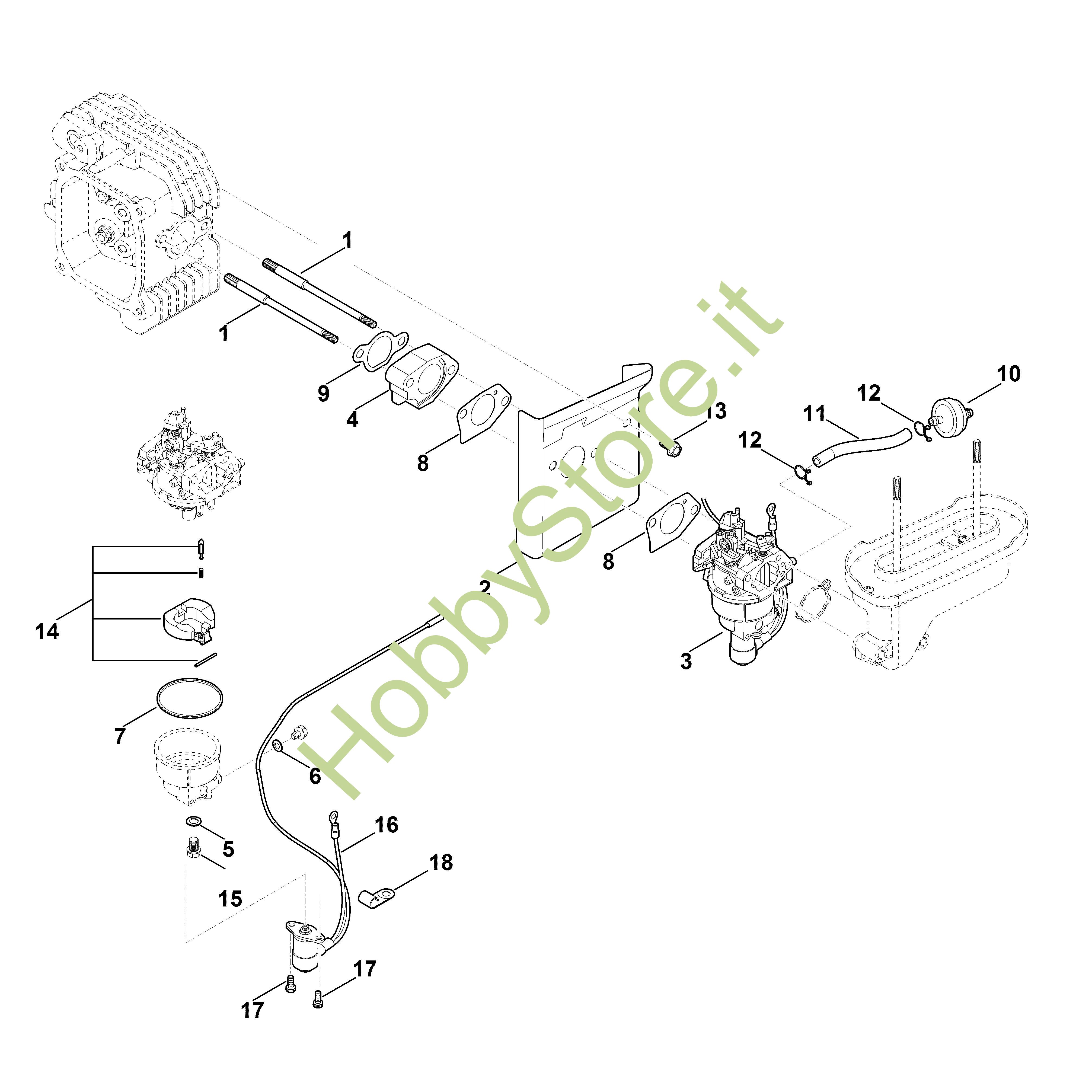 Ricambio originale Kit di riparazione carburatore EVC EVC 4000.1 (EVC4000-0002) Stihl Contiene anche i ricambi nr. da 5 a 8,9,14