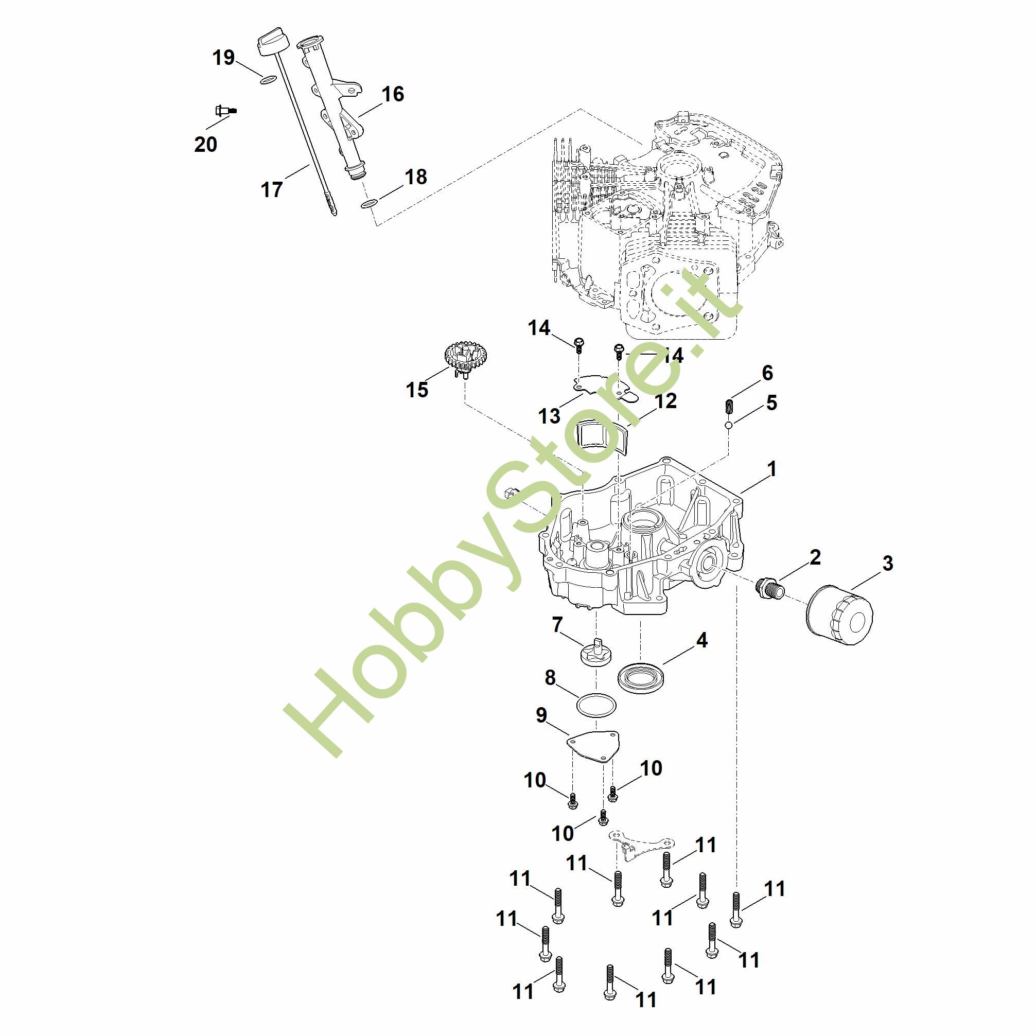 Ricambio originale Bocchettone di riempimento olio incl. astina livello EVC EVC 7000.0 (EVC7000-0001) Stihl Contiene anche i ricambi nr. 17,18,19