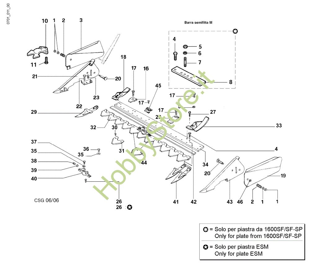Ricambio Trascinatore SF/SF-SP/ESM Barra falciante a denti semifitti FC 30 M (Fino/Until 2009) Falciatrice della marca Nibbi Richiede pezzi:1