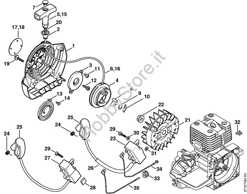 Dispositivo avviamento, impianto di accensione FR 350 Decespugliatrici spalleggiabilli (FR) FR 350 della marca STIHL