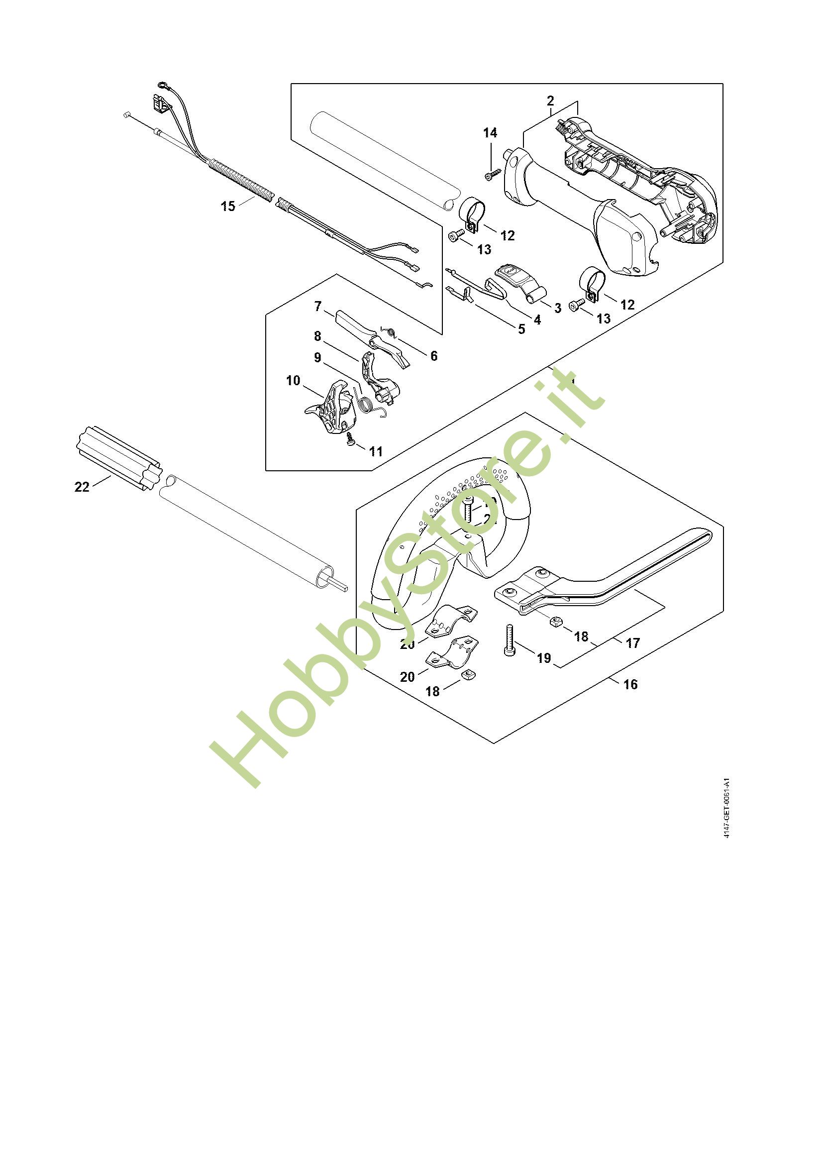 Ricambio Impugnatura di comando Decespugliatrici spalleggiabilli (FR) FR 460 TC-E STIHL Contiene anche i ricambi da n. 2 a 14