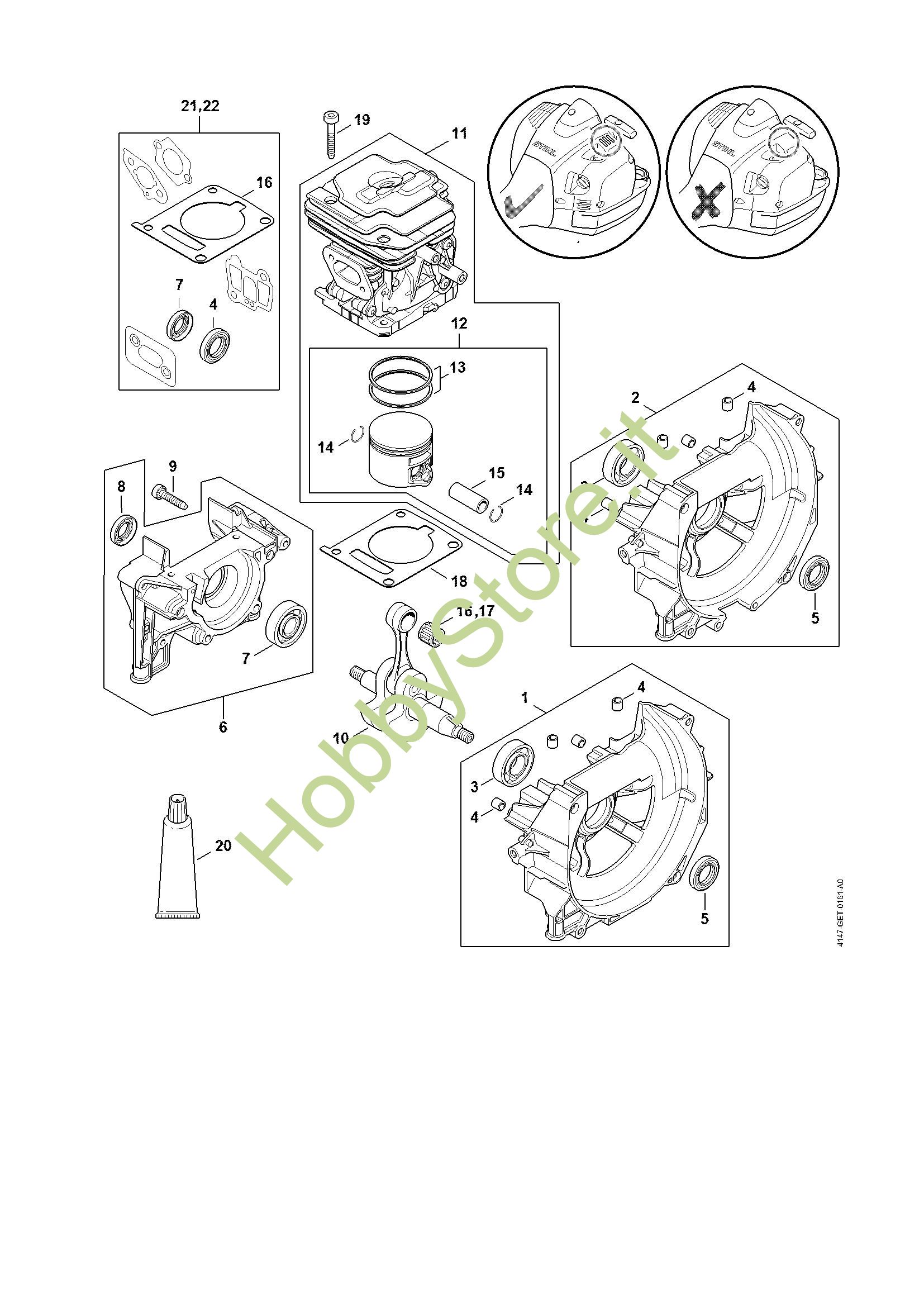 Ricambio Semi-carter albero a gomito, lato ventola Decespugliatrici spalleggiabilli (FR) FR 460 TC-EFM STIHL Contiene anche i ricambi da n. 3 a 5