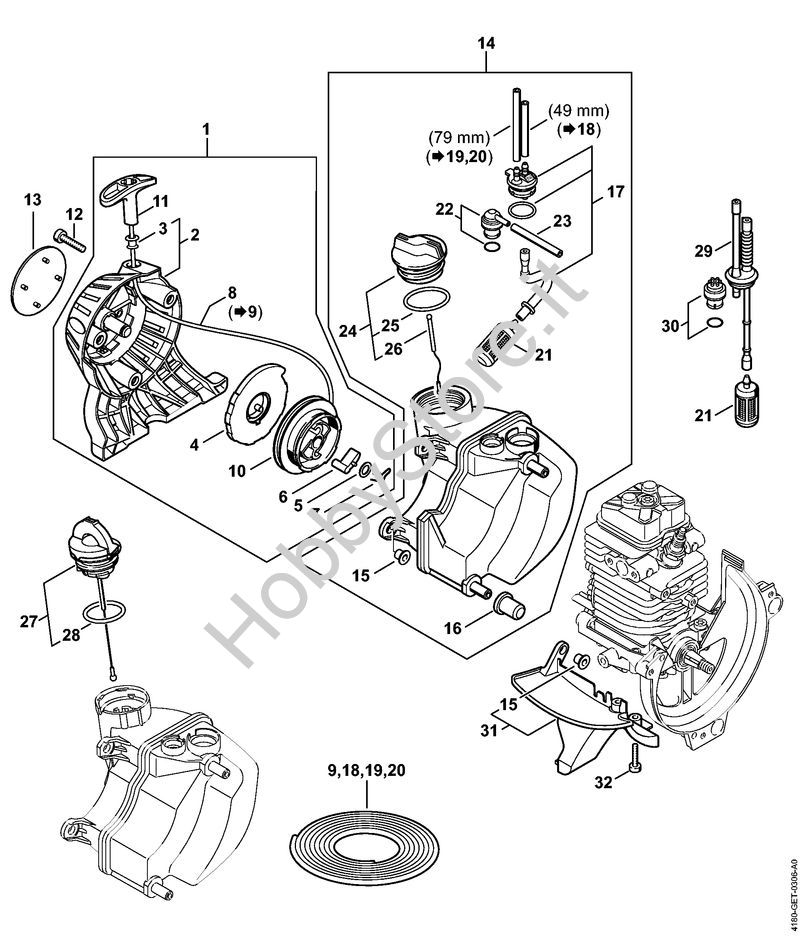 Dispositivo di avviamento, serbatoio carburante Decespugliatrici (FS) FS 100 R della marca STIHL