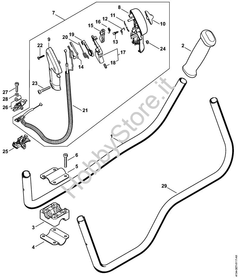 Ricambio Impugnatura di comando con tirante gas Decespugliatrici (FS) FS 120 STIHL Contiene anche i ricambi da n. 8 a 24