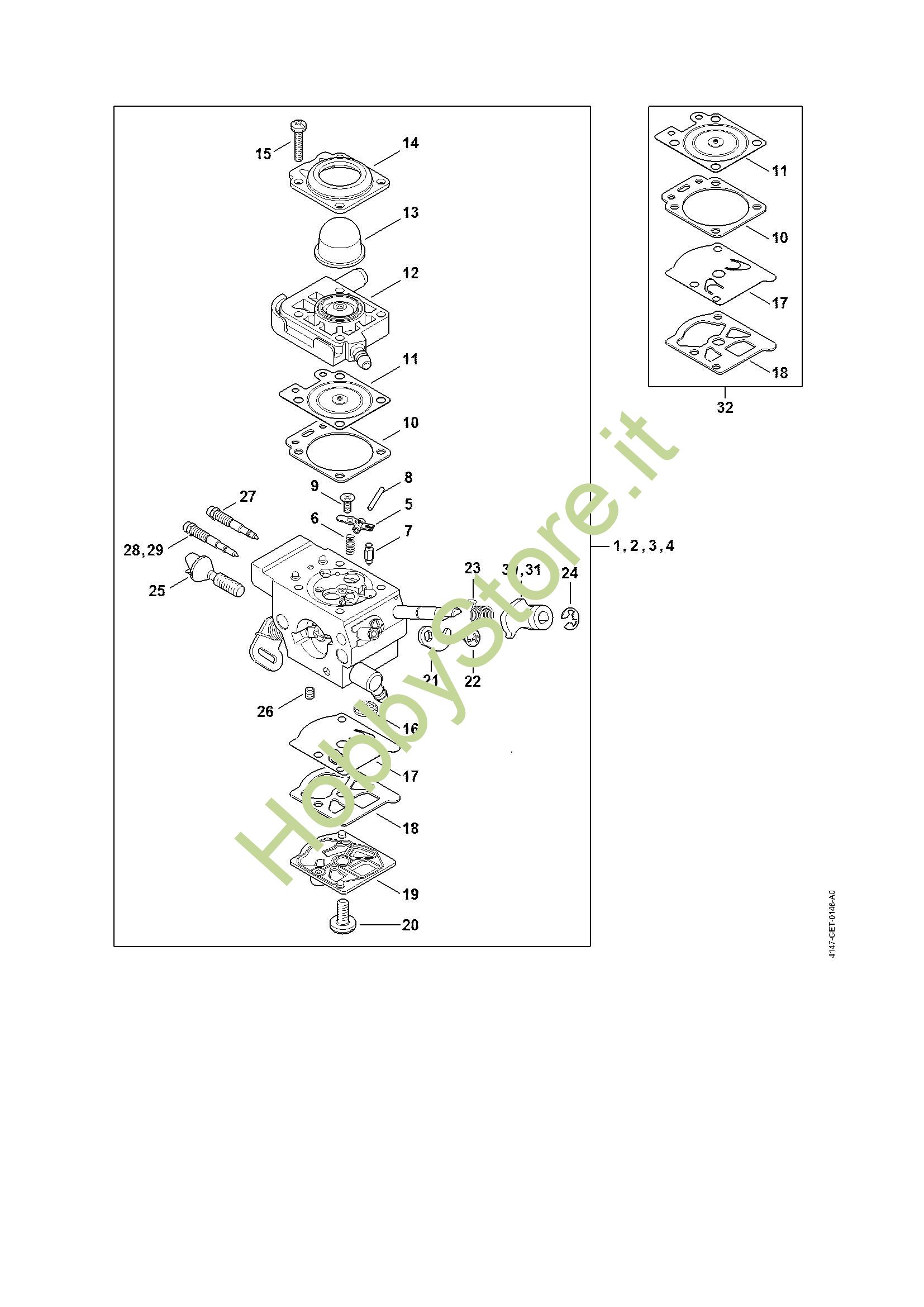 Ricambio Carburatore WTF-5A Decespugliatrici (FS) FS 240 STIHL Contiene anche i ricambi nr. da 5 a 28 e 31