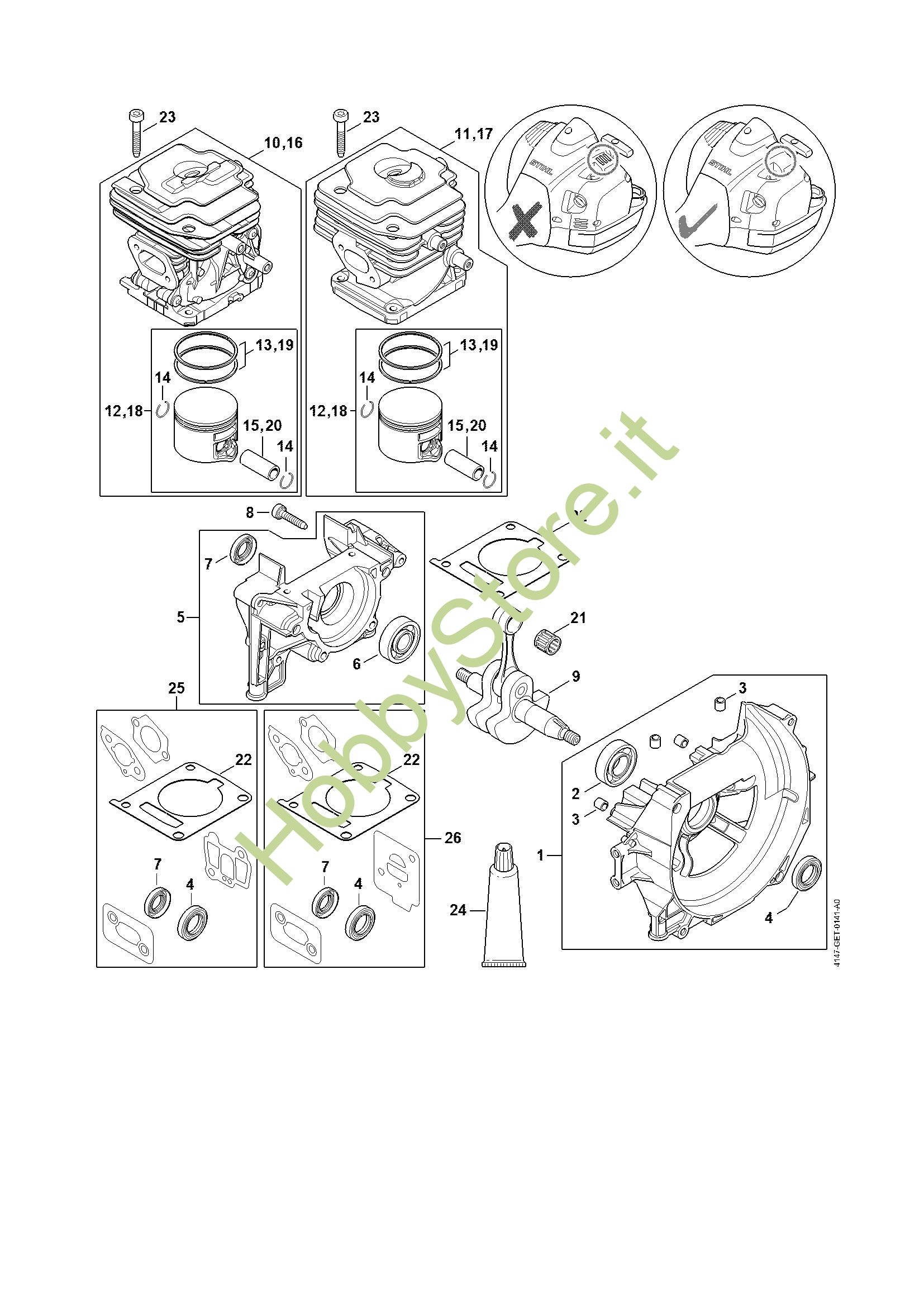 Ricambio Semi-carter albero a gomito Decespugliatrici (FS) FS 260 STIHL Contiene anche i ricambi n. 6 e 7